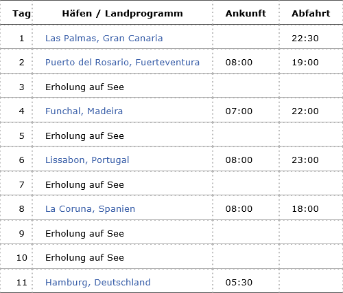 Kreuzfahrt Kanaren, Madeira & Europas Westküste: Las Palmas (Gran Canaria), Fuerteventura, Madeira, Lissabon (Portugal), La Coruna (Spanien), Hamburg