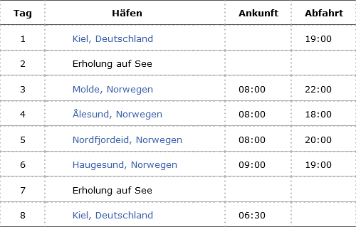 Kreuzfahrt Norwegen mit Alesund: Kiel, Molde (Norwegen), Alesund (Norwegen), Nordfjordeid (Norwegen), Haugesund (Norwegen), Kiel
