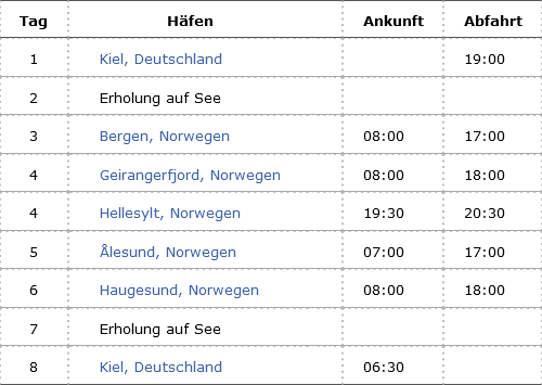 Kreuzfahrt Norwegen mit Geirangerfjord: Kiel, Bergen (Norwegen), Geirangerfjord (Norwegen), Hellesylt (Norwegen), Alesund (Norwegen), Haugesund (Norwegen), Kiel