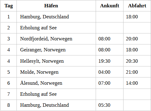 Kreuzfahrt Norwegen mit Geirangerfjord: Hamburg, Nordfjordeid (Norwegen), Geiranger (Norwegen), Hellesylt (Norwegen), Molde (Norwegen), Alesund (Norwegen), Hamburg