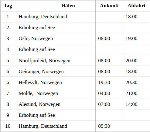 Kreuzfahrt Norwegens Fjordwelten: Hamburg, Oslo (Norwegen), Nordfjordeid (Norwegen), Geiranger (Norwegen), Hellesylt (Norwegen), Molde (Norwegen), Alesund (Norwegen), Hamburg