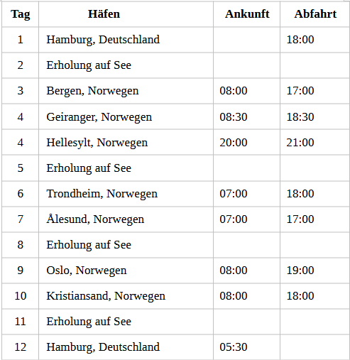 Kreuzfahrt Norwegens Fjordwelten: Hamburg, Bergen (Norwegen), Geiranger (Norwegen), Hellesylt (Norwegen), Trondheim (Norwegen), Alesund (Norwegen), Oslo (Norwegen), Kristiansand (Norwegen), Hamburg